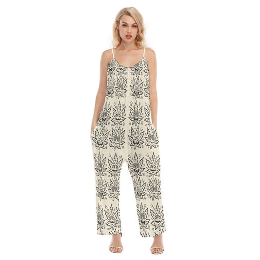 KGD Doodle Art Collection | All-Over Print Women's Loose Cami Jumpsuit