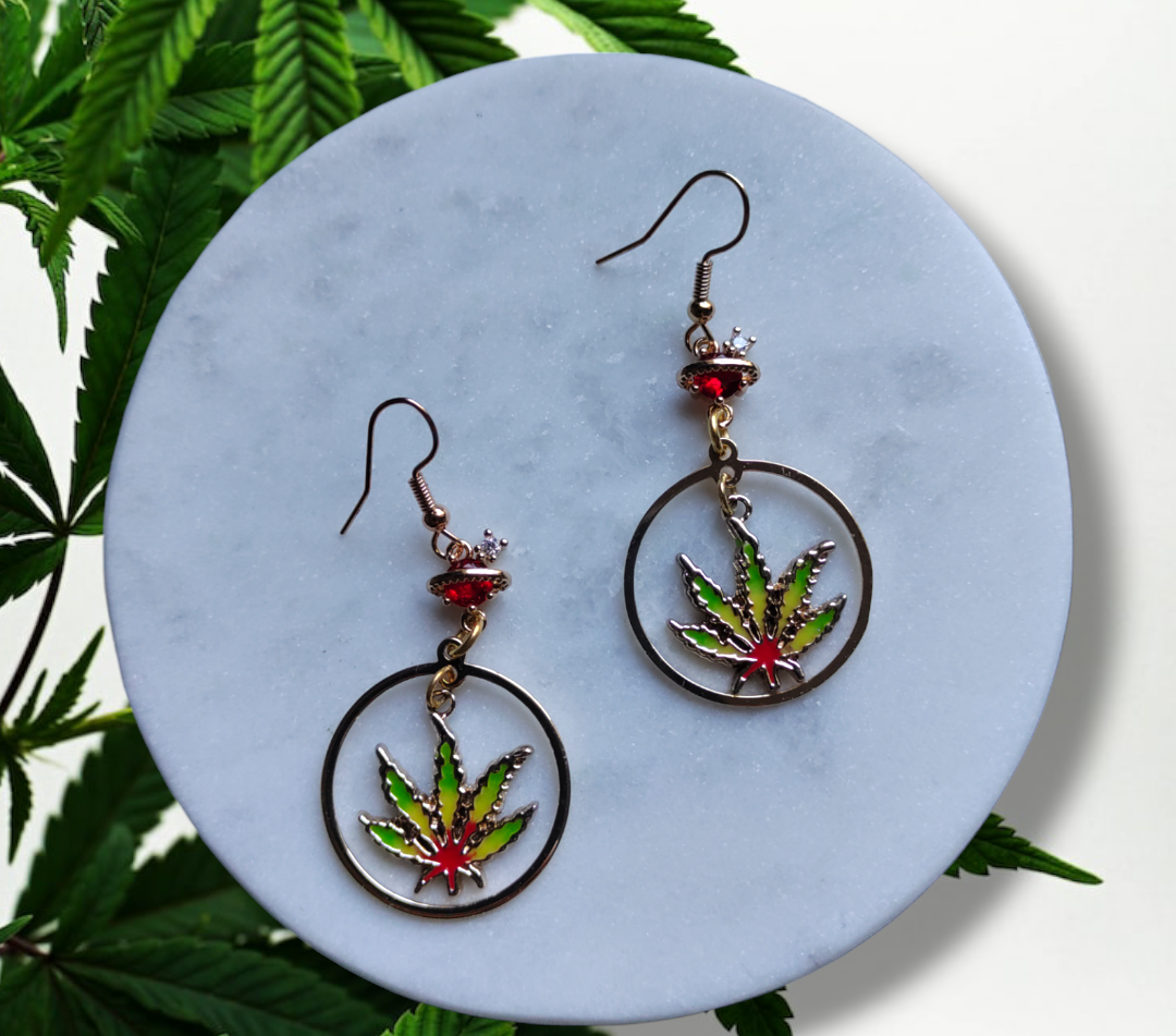 420 Leaf Enamel earrings are lightweight stainless-steel accessories in an array of styles featuring enameled red, yellow and green leaves. Celebrate your love of marijuana in style with these fashionable gold or silver earrings.