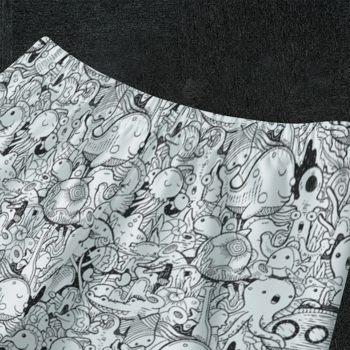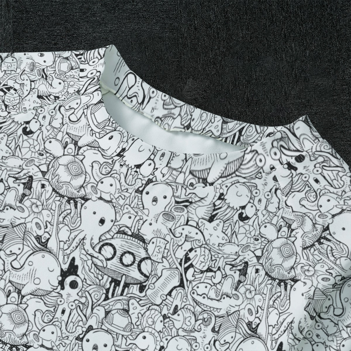 The unique doodle print lets you express your creativity through fashion, making a bold statement wherever you go. Its lightweight jersey fabric keeps you cool even on the hottest days, blending style and functionality seamlessly.