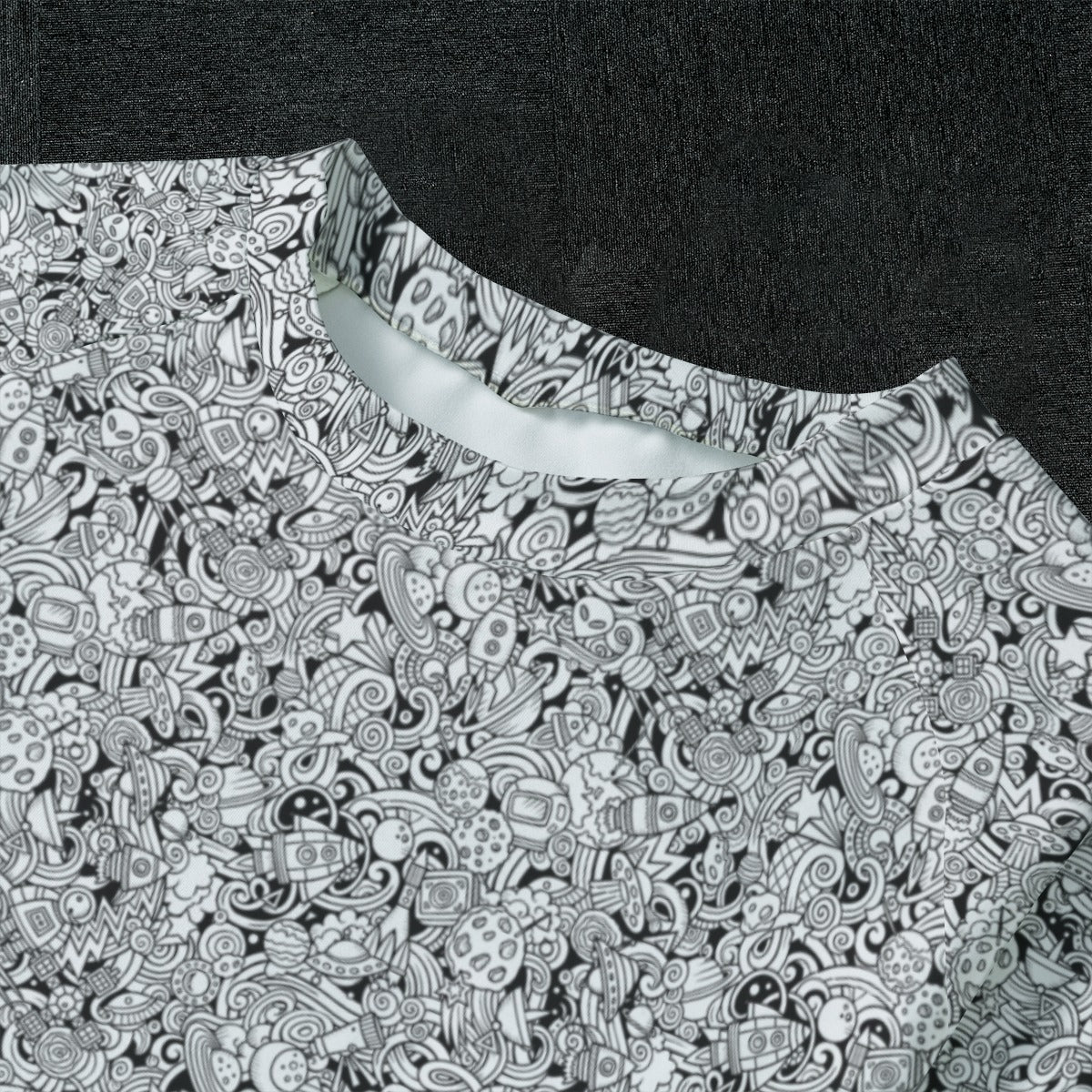 The unique doodle print lets you express your creativity through fashion, making a bold statement wherever you go. Its lightweight jersey fabric keeps you cool even on the hottest days, blending style and functionality seamlessly.