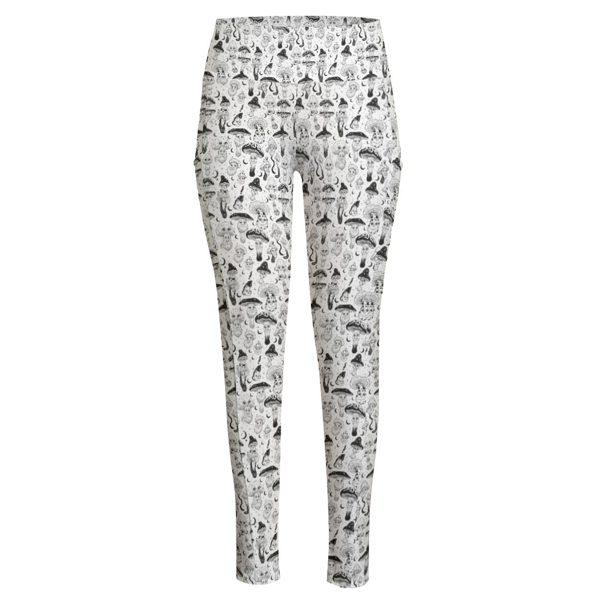 KGD Doodle Art Collection | Trippy Mushroom Doodle Art High Waist Leggings With Side Pocket