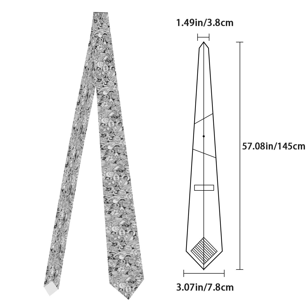 The tie is made using finished printing technology, with both the inner fold area and the internal area being white.