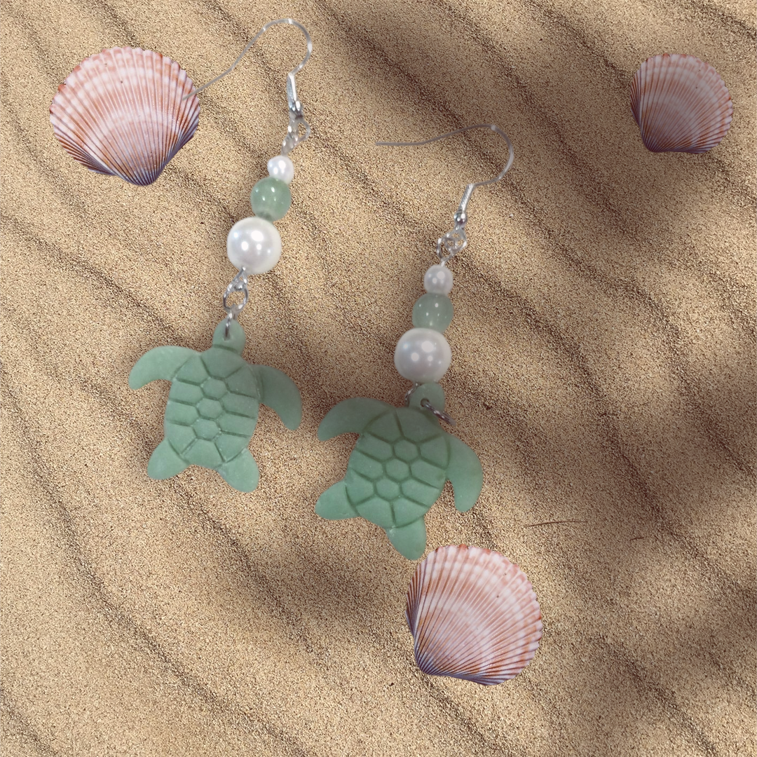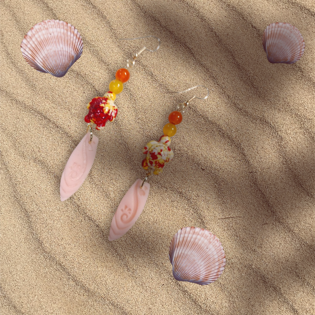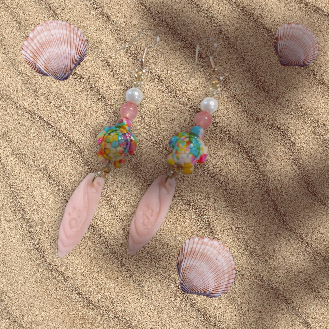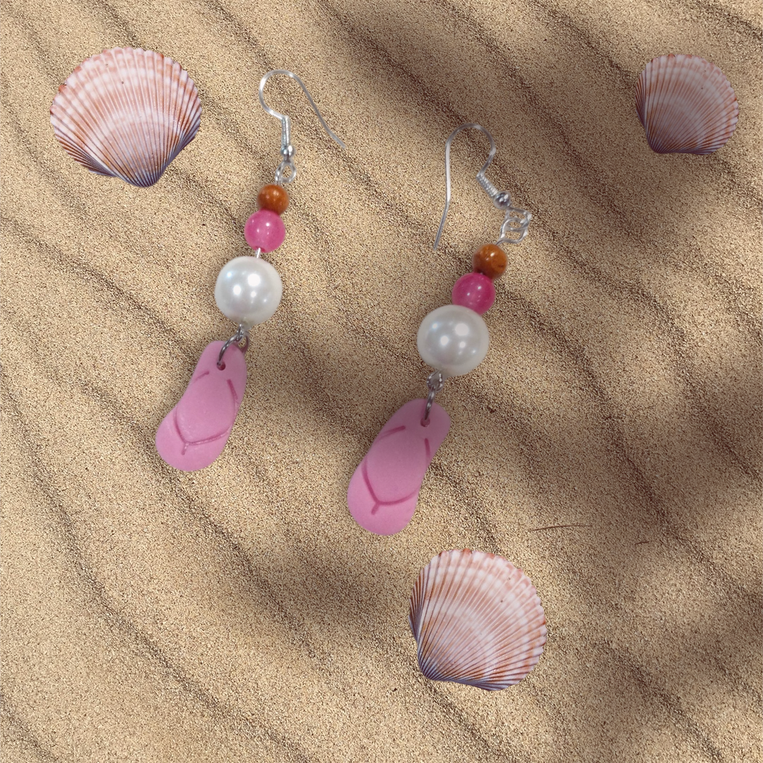 "Add a touch of quirk and playfulness to your beach look with our handmade polymer clay earrings from The Beachy Collection. Featuring faux pearl beads and translucent design, these lightweight earrings are finished with durable 304 stainless steel hooks. Perfect for a fun day by the sea!"